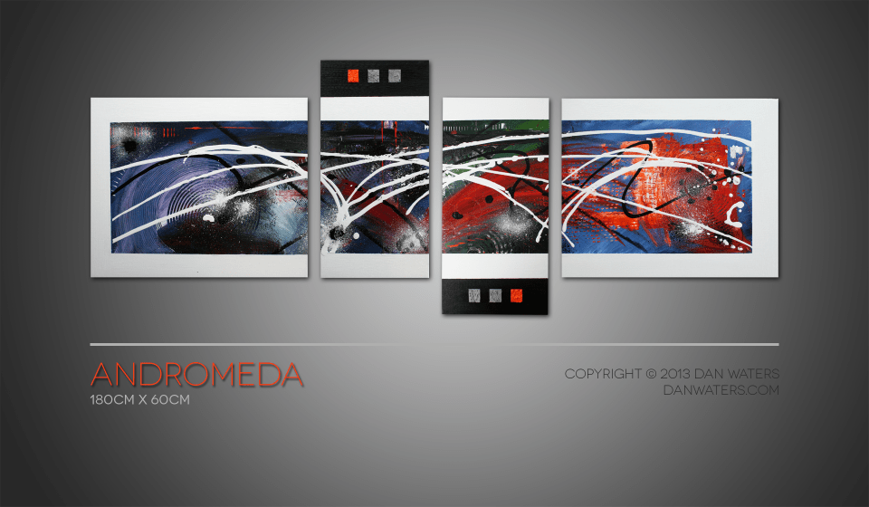 If you look closely, the left two and far right canvas are blue. They were in fact painted together first, and the green canvas background was painted separately.